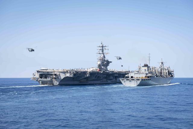 ▲哪怕美国航母也依赖大型补给舰提供战时海上补给