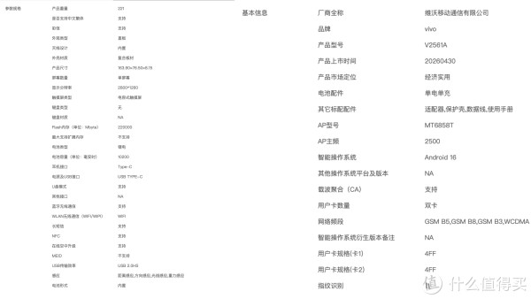该机出厂搭载最新的OriginOS6(基于Android16),支持多功能NFC,随机标配充电套装和手机壳等等。